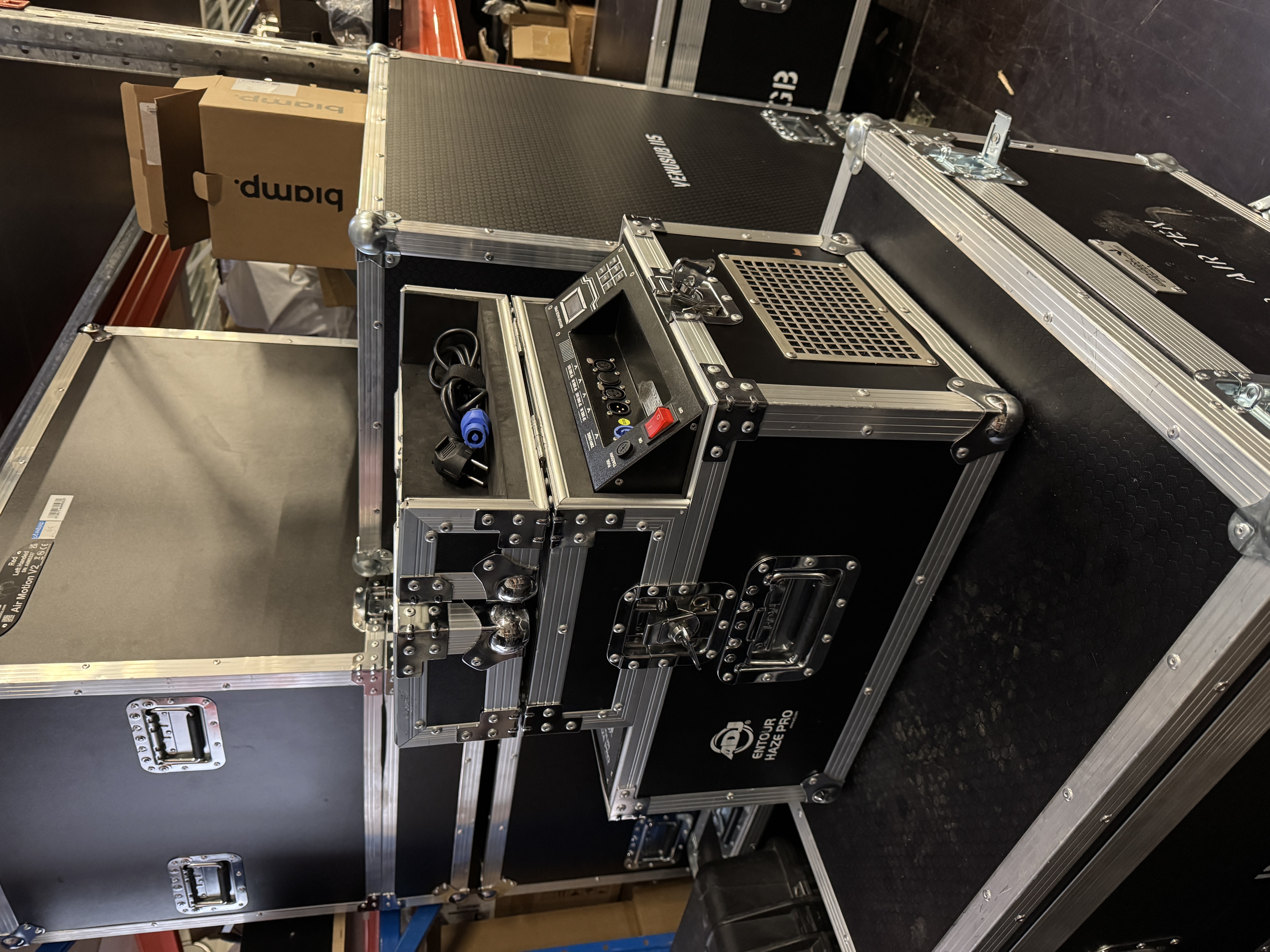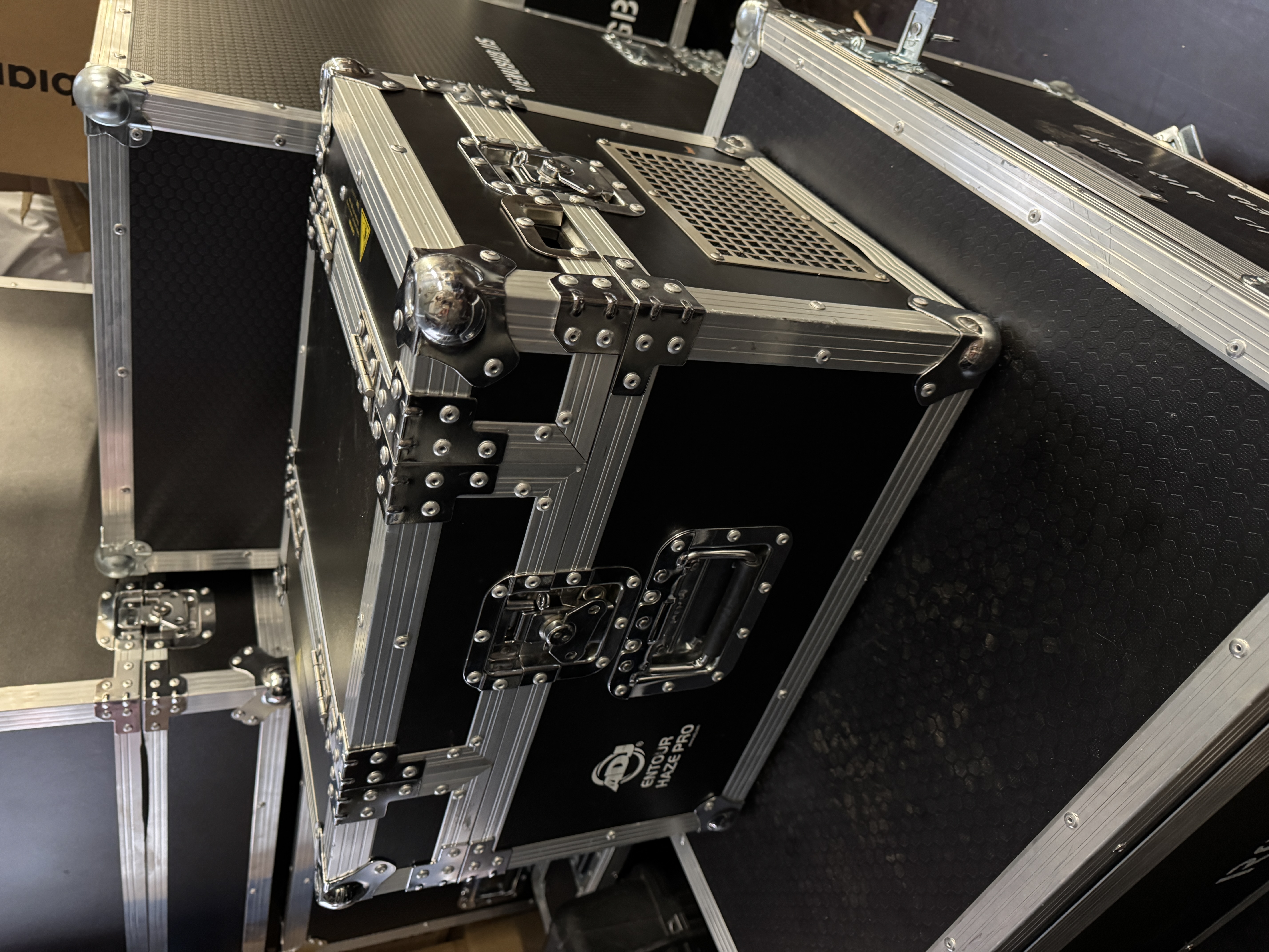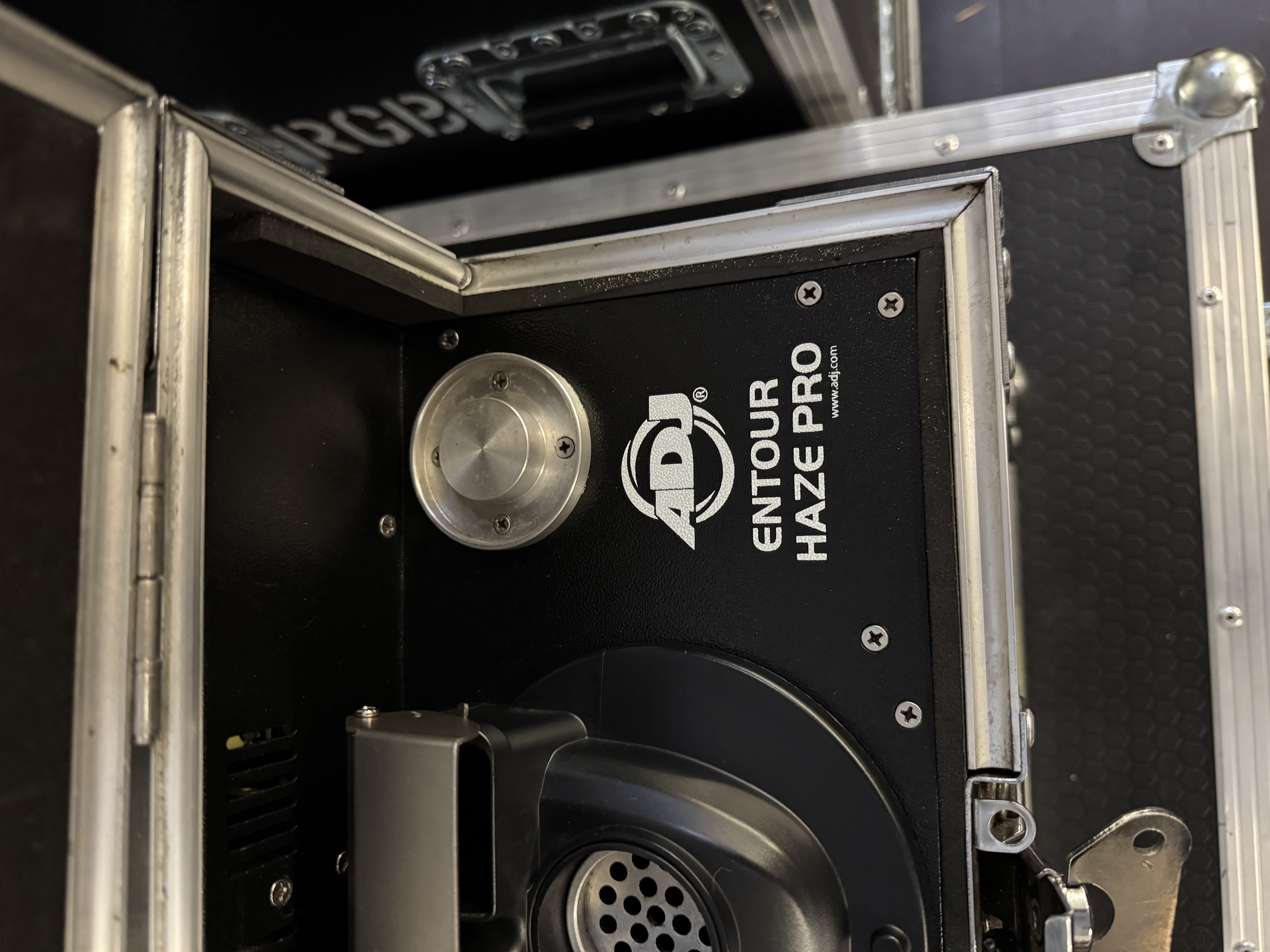 Part of the expanding ADJ Entour Series of atmospheric machines, the Entour Haze Pro is a touring-grade haze machine built into a durable flight case. It requires no warm-up time and, with an air pressure of 101psi, is able to generate an impressive output of 3,000 cubic ft. per minute. This allows large stages and venues to be easily and quickly filled with lightshow-enhancing haze whenever it is required. The machine uses oil-basedhaze liquid only and has a fluid tank capacity of 2.5 Liters. It has an extremely efficient fluid consumption rate of 15 hours continuous output per Liter, which means that 37.5 hours of haze can be generated from a single tank of fluid.