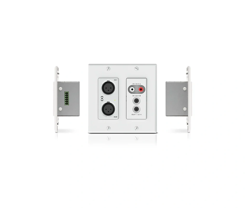 The Attero Tech unD6IO is a cost-effective, multi-IO Dante network audio wallplate, featuring XLR, RCA and 3.5 mm inputs along with one 3.5 mm and two balanced outputs in a dual-gang form factor. The unD6IO is PoE enabled, delivering all connectivity (power, control and audio data) with a single CAT-5e/6 cable. The size and I/O density of the unD6IO make it easy to put Dante connectivity wherever it is needed - near the audio source or sink - thereby eliminating costly and interference-prone analog wiring.
